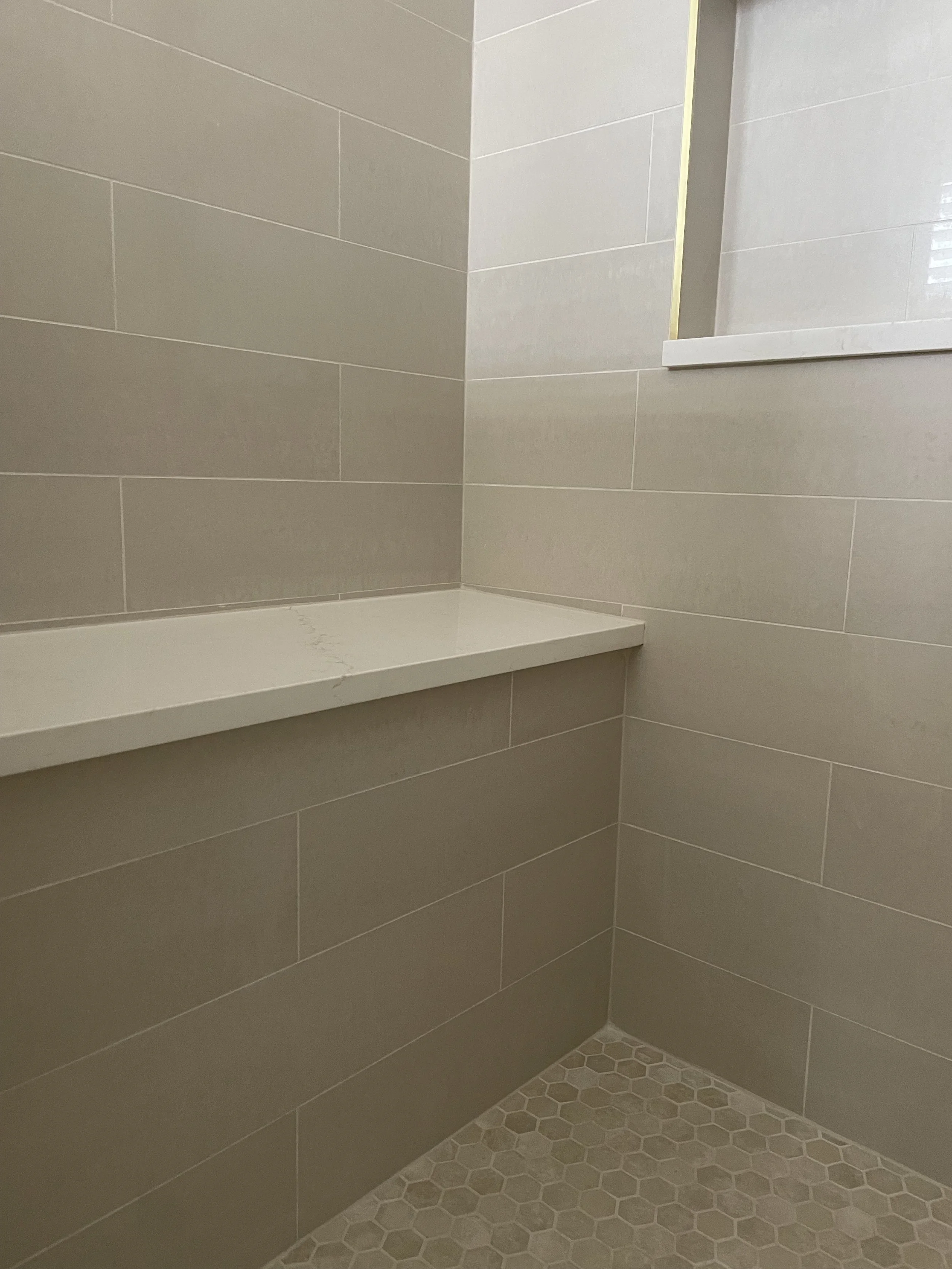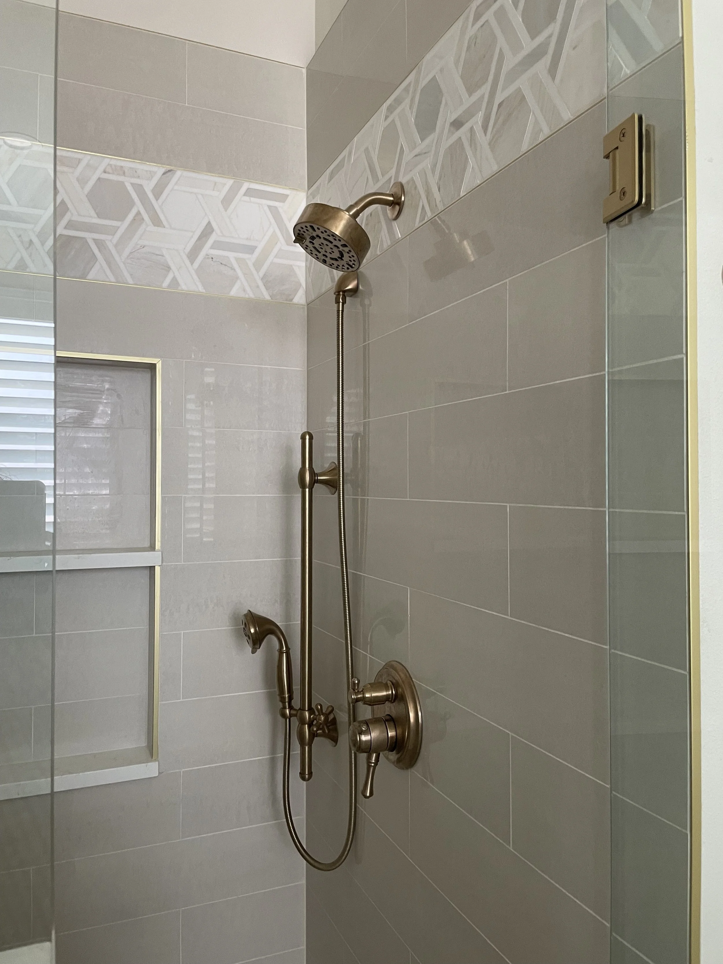 12×24 tiles were cut to 6×24 for the perfect shower tile